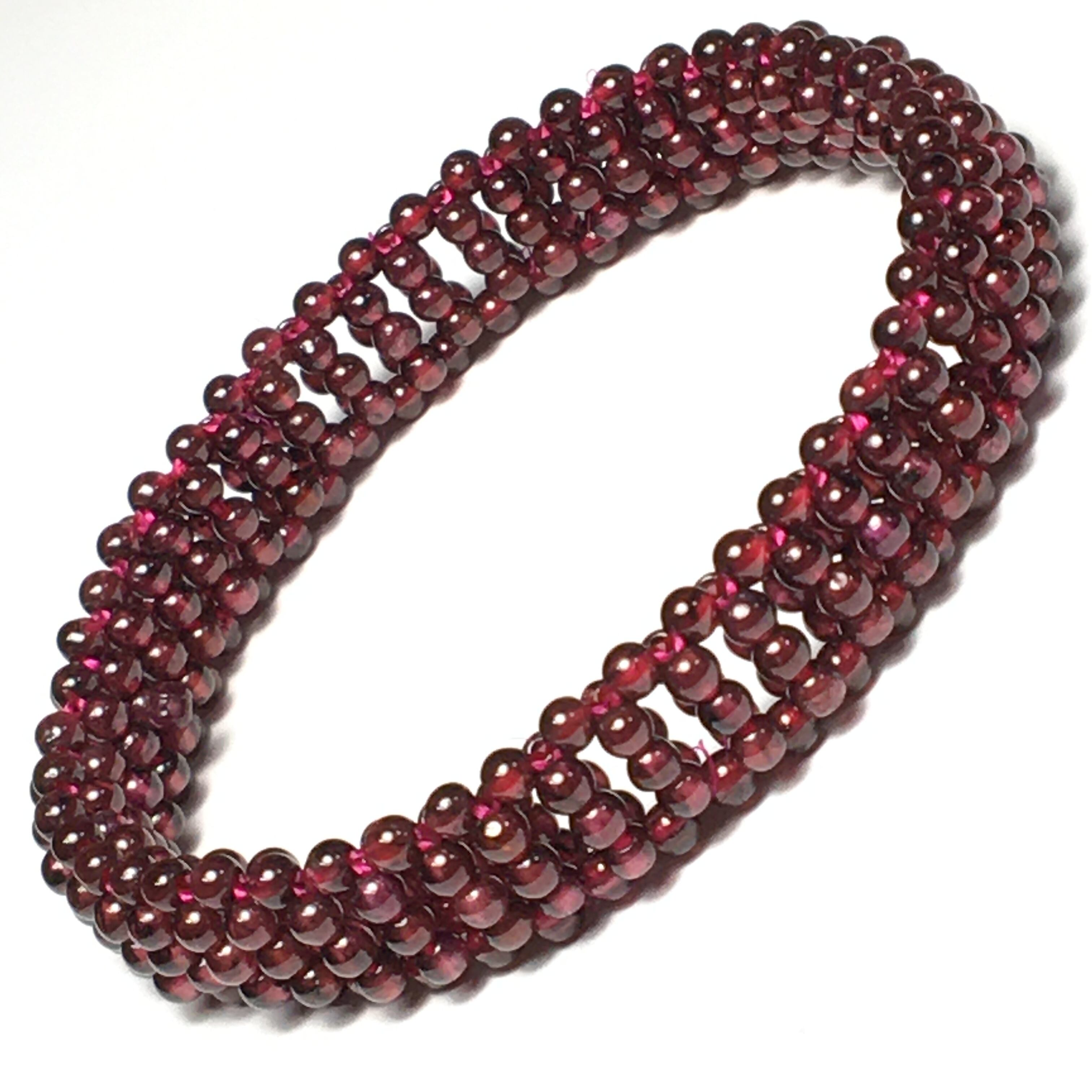 《No.112》恋愛成就 天然石ガーネット 手編みデザイン 内径15〜16cm
