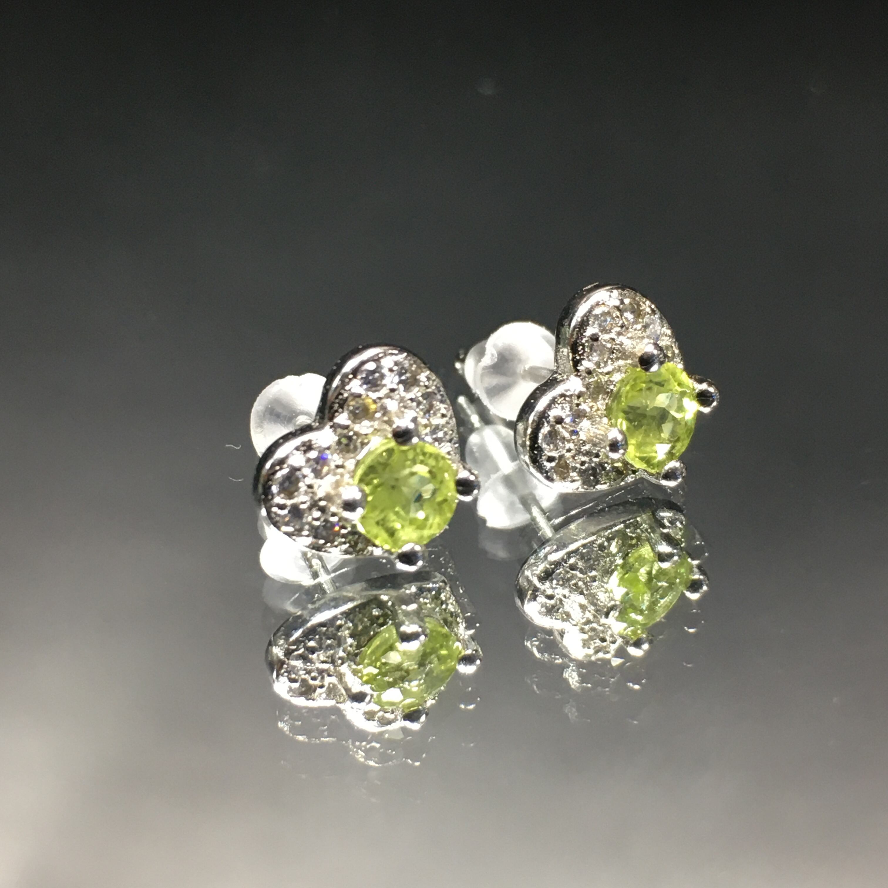 《No.P040》ミャンマー産 天然石ペリドット ハート型ピアス
