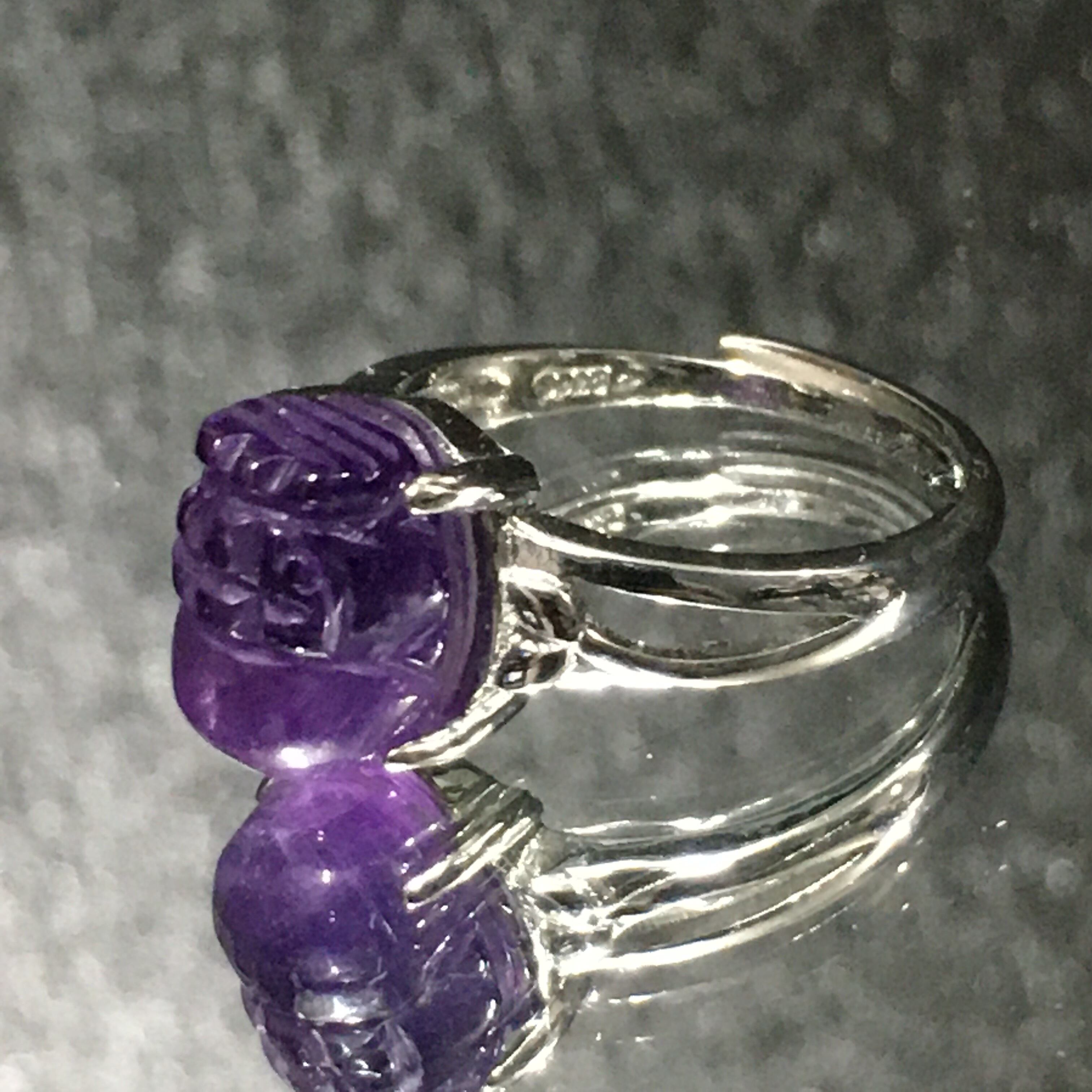 《No.R110》天然石アメジスト 貔貅デザイン フリーサイズring