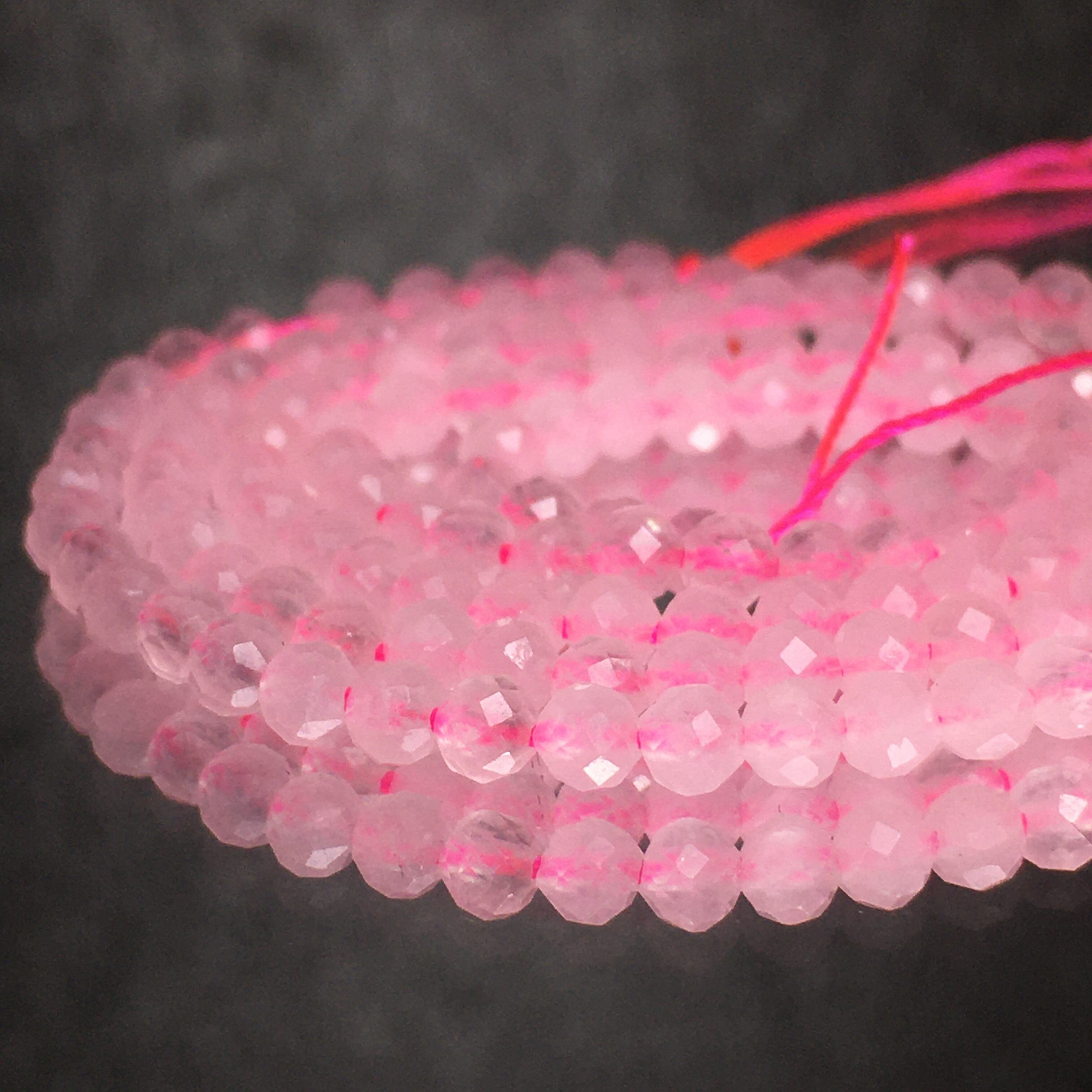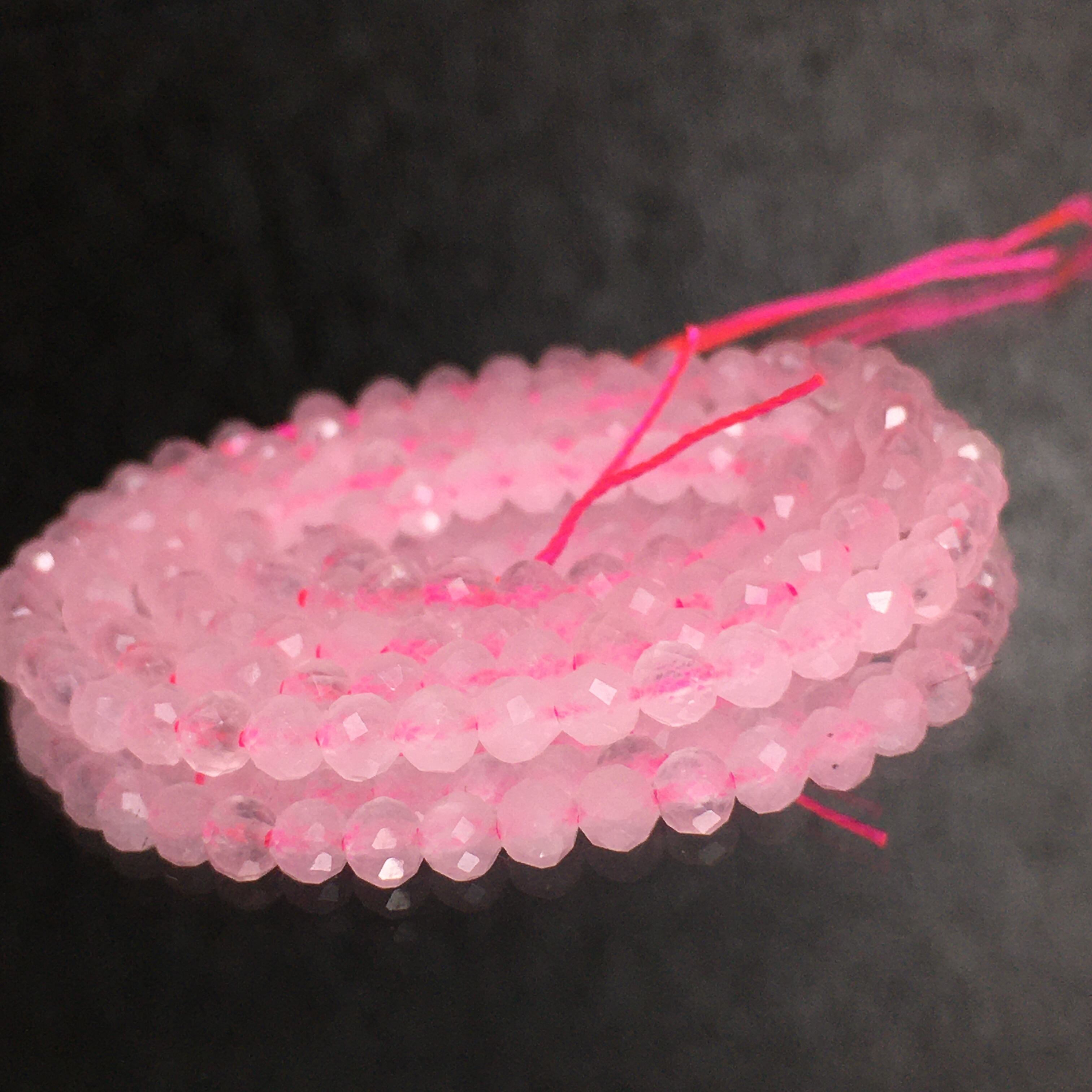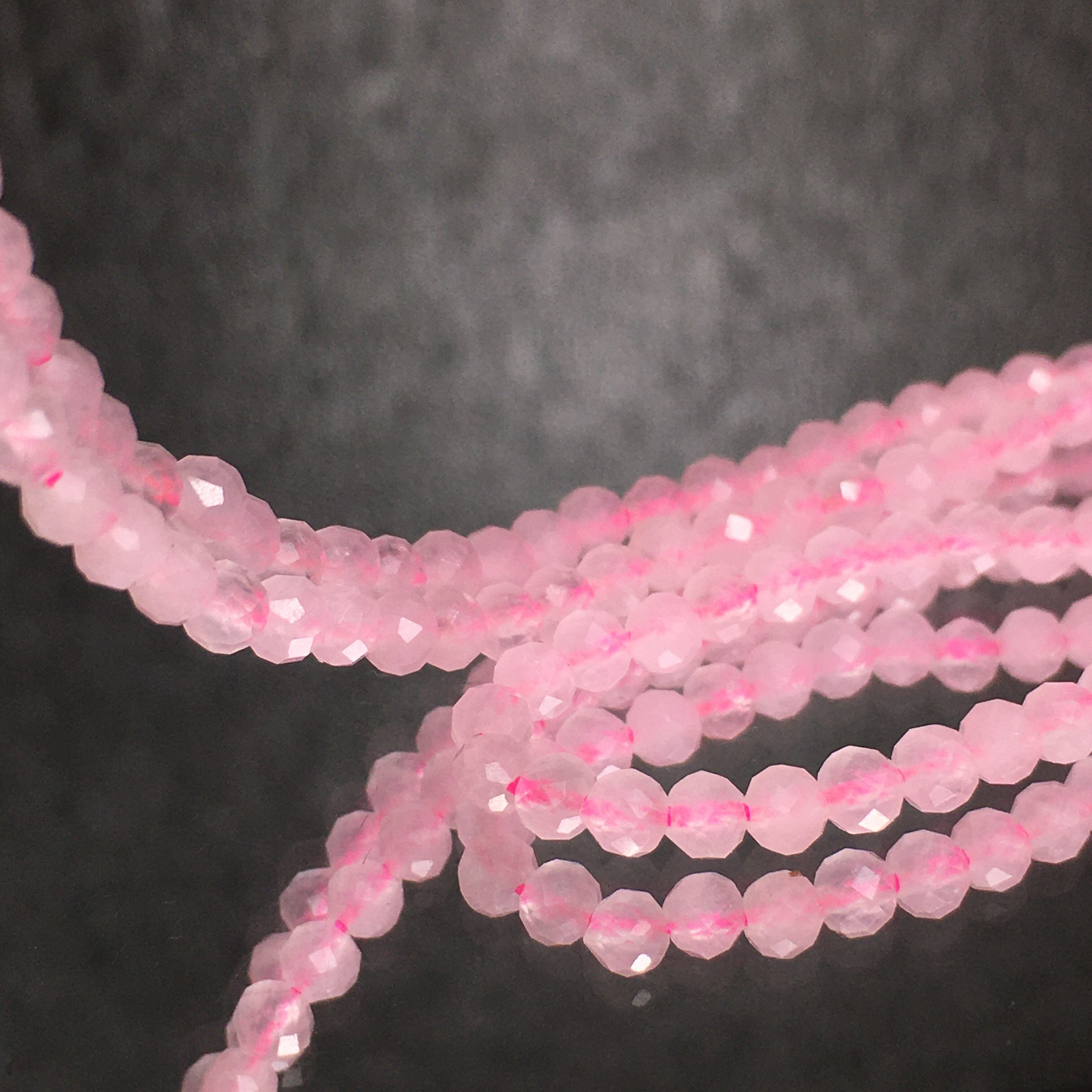 《連材》天然石ローズクォーツ 多面カット 一連