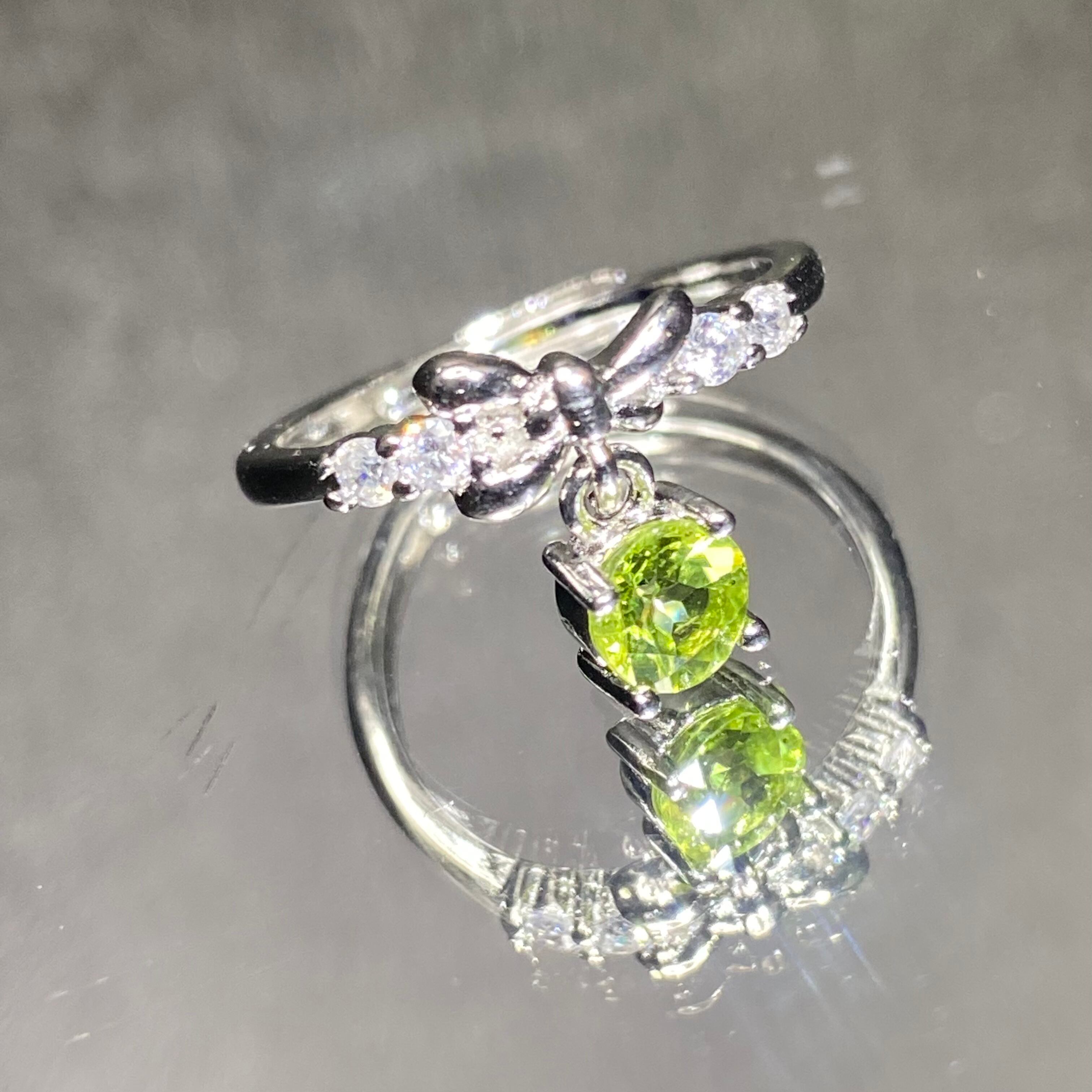 《No.R050》宝石品質 天然石ペリドット×モアサナイト フリーサイズリング